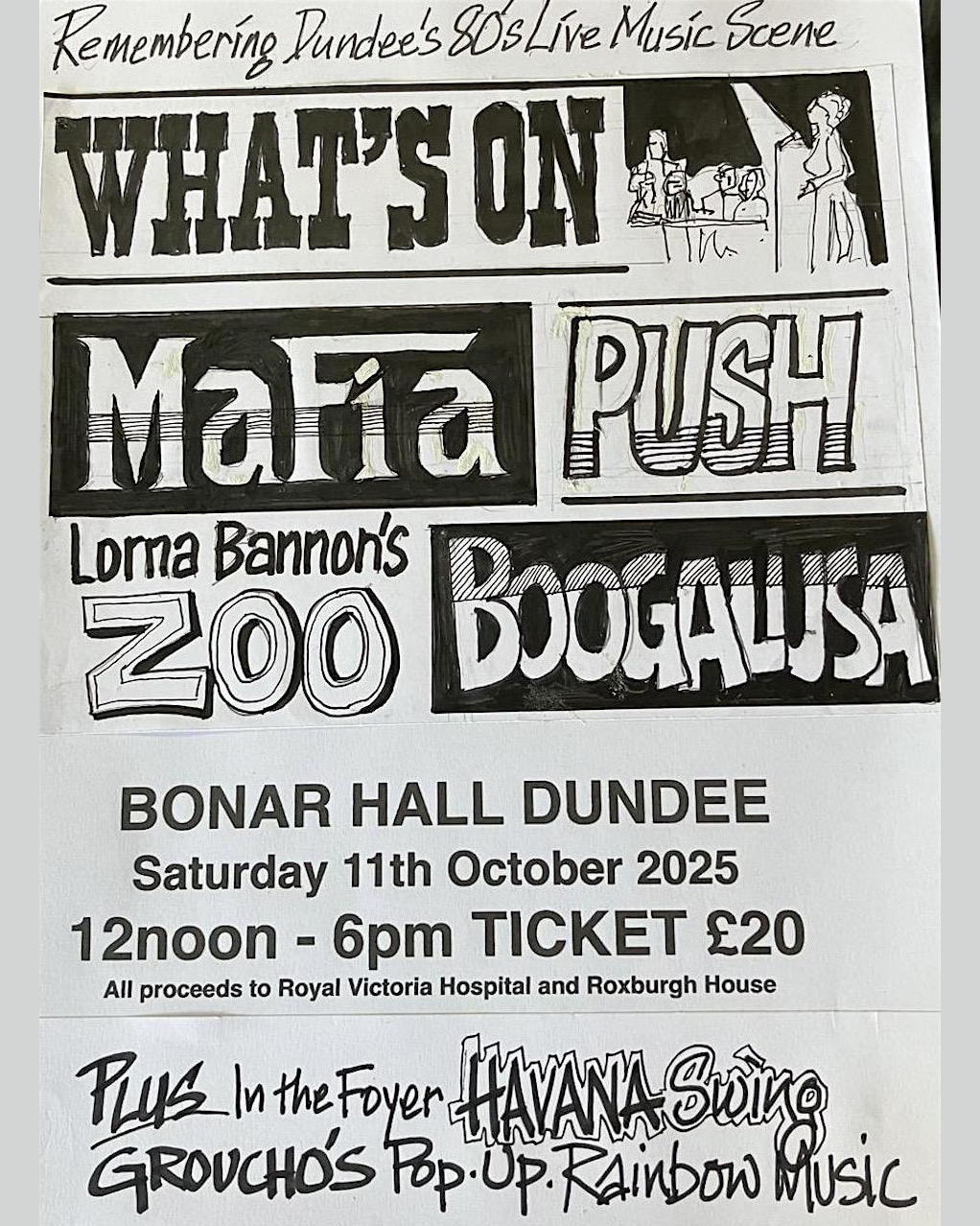 Join with us to celebrate the history of the Dundee music scene of the 1980s, with live performances by some of the most popular bands who played all the best venues across the City.