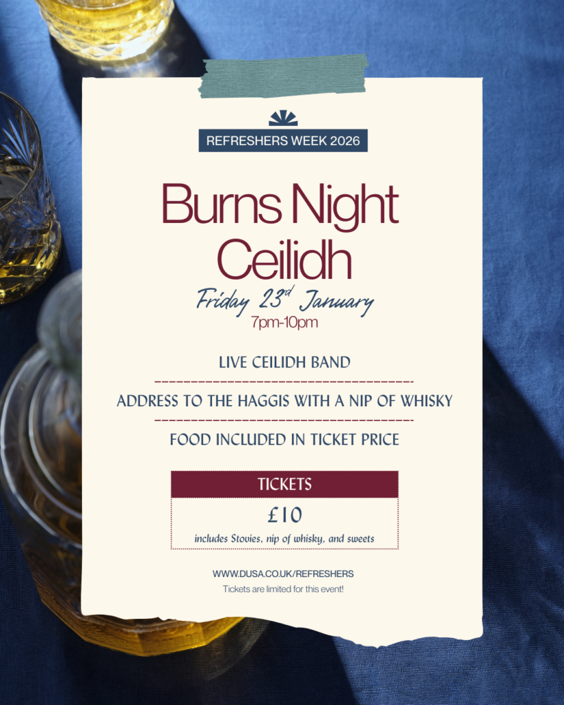 Join us for our Burns Night Ceilidh as part of Refreshers Week 2026 on Friday 23rd January, from 7pm–10pm.